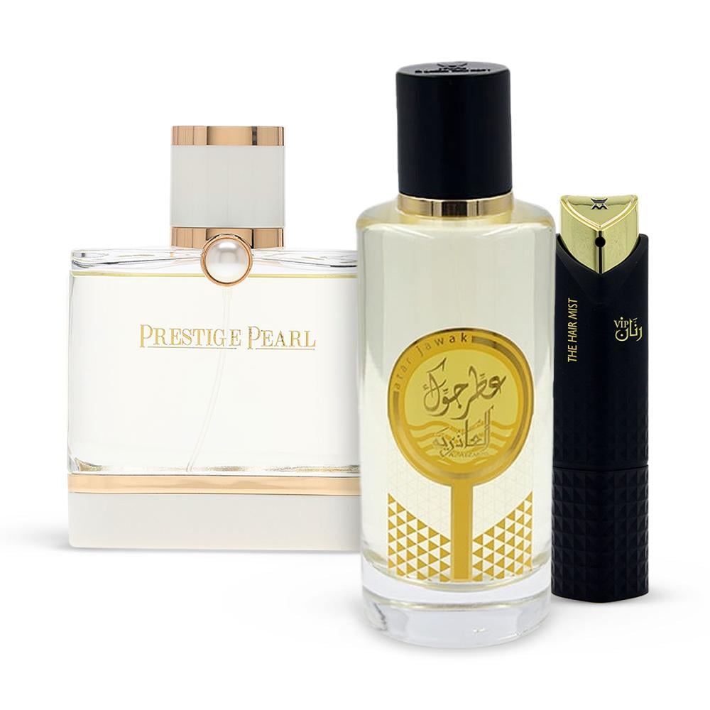 برستيج بيرل عطر كل أنثى أنيقة، رشة تلتقي فيها الأناقة بالجمال تبدأ بنفحات منعشة من الفلفل الوردي، لينتقل بك إلى عبير الورد الرقيق المفعم بالأنوثة والنعومة التي تليها فخامة الباتشولي لتضفي مزيداً من العمق والجاذبية.